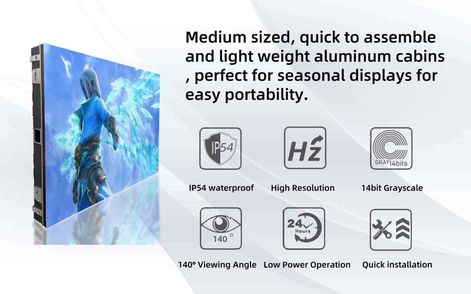 640mmx480mm Standard size cabinet design.Suitablefor all LED display units.320x160mm Double-sidedlock design for more secure installation.