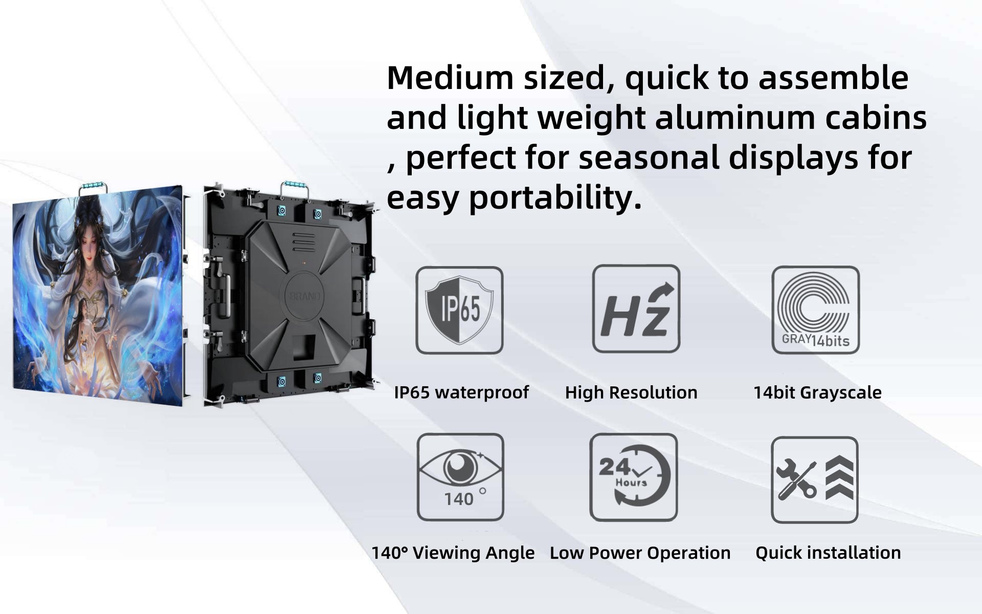 The display weight is only 14.5kg, easy to transport,save cost, and the light weight is convenient forinstallation, assembly and disassembly.