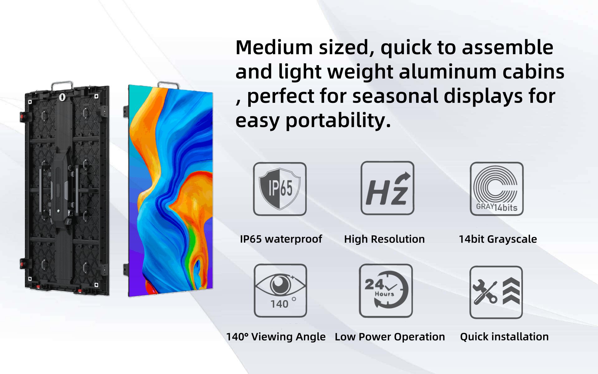 500x500mm Standard size cabinet design.Suitablefor all LED display units.250x250mm Double-sidedlock design for more secure installation.
